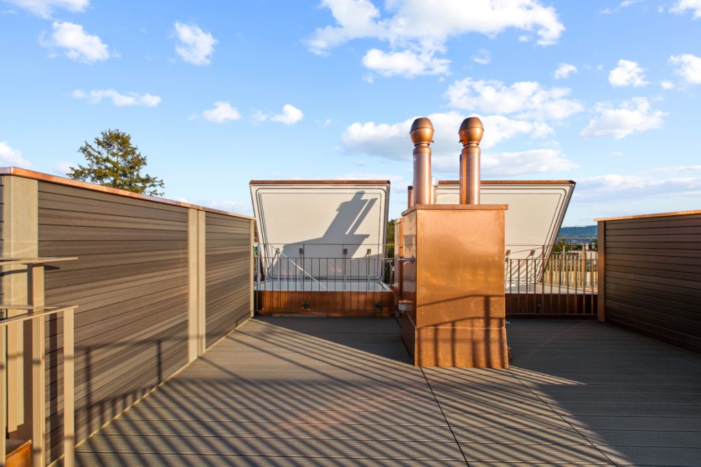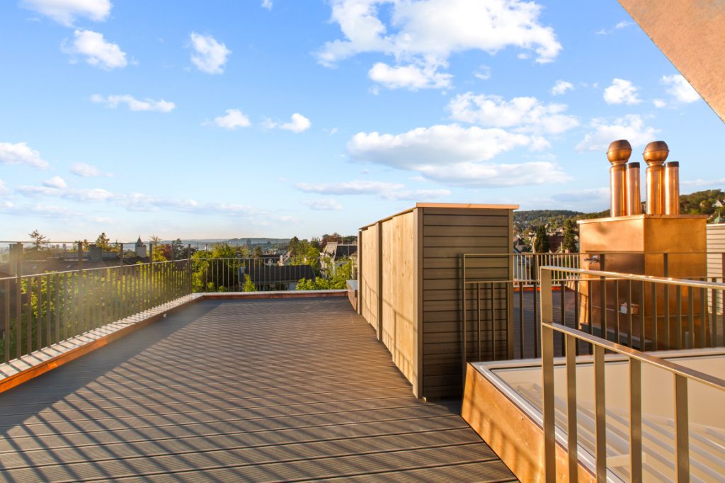 Die Terrassen unserer gemütlichen Dachwohnungen bieten eine traumhafte Aussicht über die Dächer von Zürich mit Blick auf den See. Die Küchen bieten allen Komfort. In den Wohnungen sind helle Keramikplatten verlegt. Die Wohnungen sind mit Multimediasteckdosen versehen und jede Wohnung ist mit einem Waschturm ausgestattet. Garage, Abstellräume, Lift usw. ebenfalls vorhanden.
